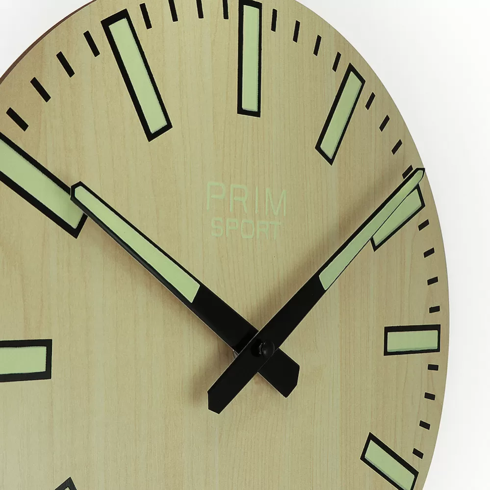 Nástenné drevené hodiny PRIM Luminescent Sport I majú dyhovaný vzor a veľmi výrazné športové indexy. Hodiny sú vyrobené z MDF. Nielen indexy, ale aj ručičky a logo sú potiahnuté luminiscenčnou vrstvou vďaka ktorej vám budú hodiny svietiť v akejkoľvek temnej miestnosti a budete tak vždy vedieť koľko je práve hodín. Rozmery 297 x 40 mm.