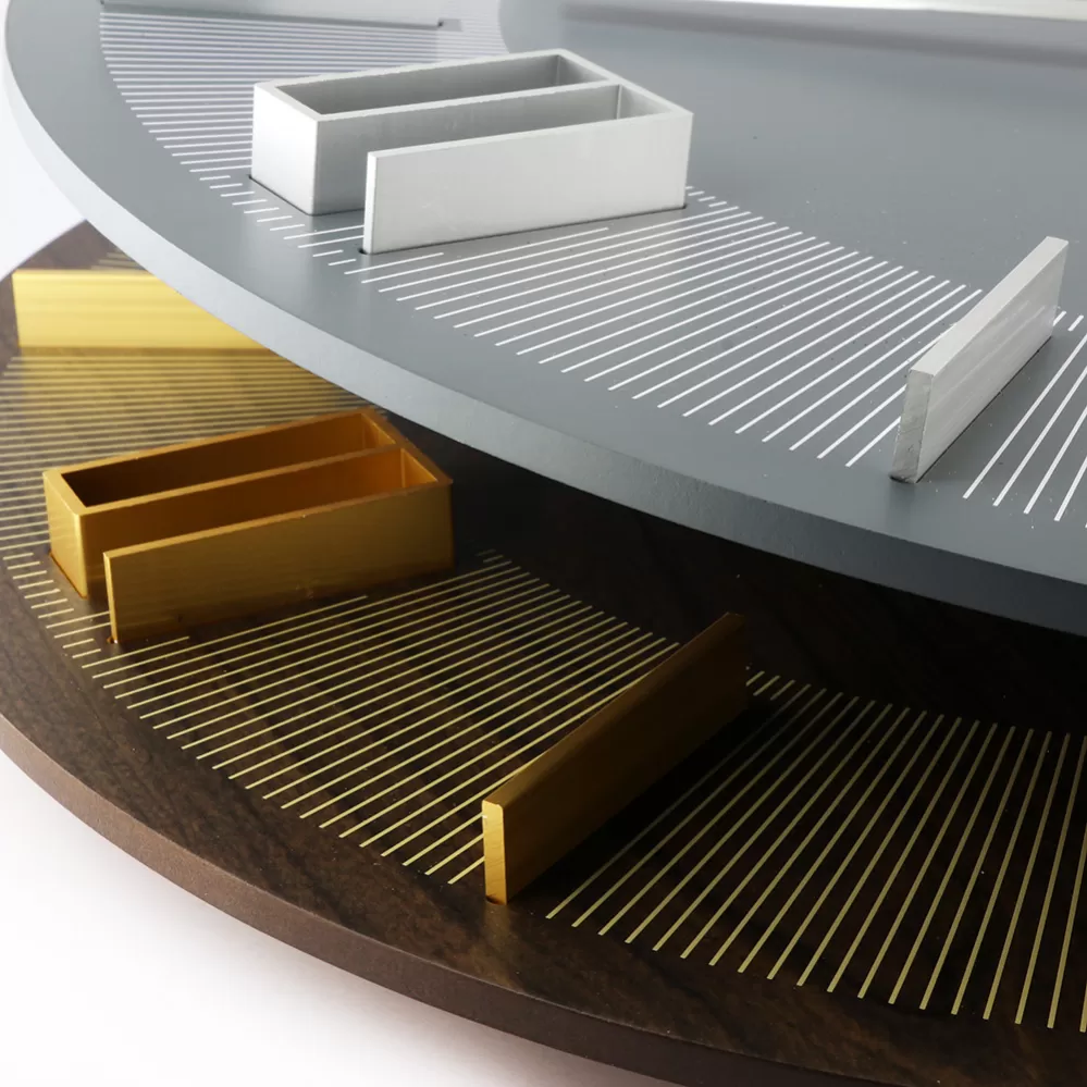 Drevené nástenné hodiny PRIM Timber Unique sú dokonalou kombináciou prírodného materiálu a moderného dizajnu, čo z nich robí výrazný doplnok do každého interiéru. Ich 3D kovové číslice a indexy vytvárajú sofistikovaný kontrast s dreveným podkladom, čo hodinám dodáva nadčasovú eleganciu. Vďaka spoľahlivému strojčeku Quartz Taiwan zaručujú tieto hodiny presný čas a zároveň prinášajú estetickú hodnotu do akejkoľvek miestnosti. Rozmery ∅ 400 mm.