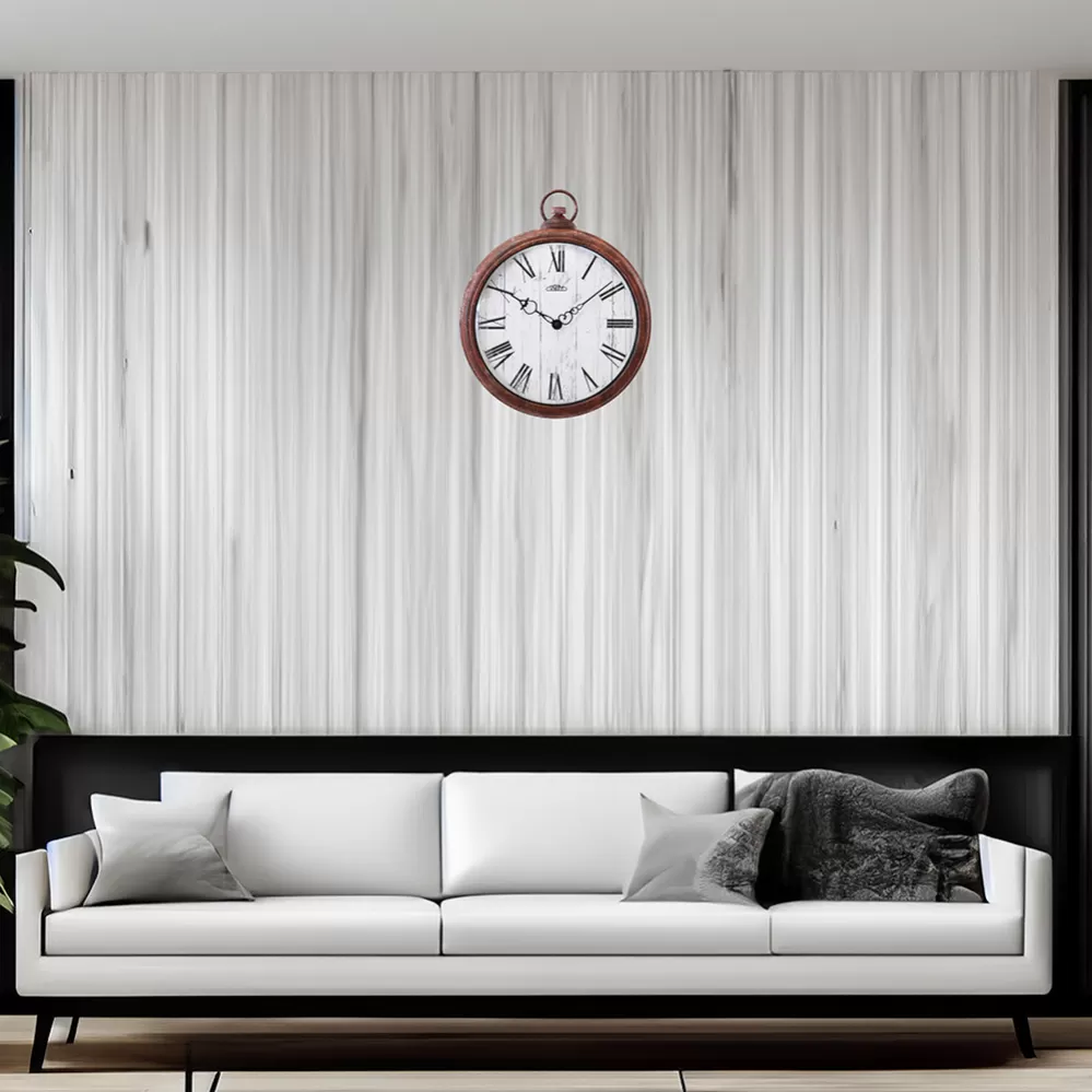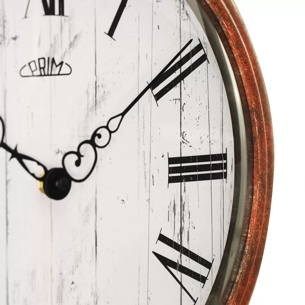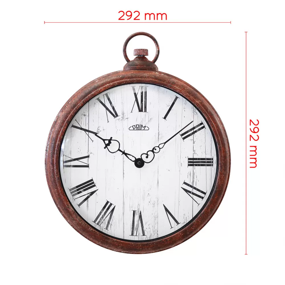 Nástenné plastové hodiny v neopozeranom vintage štýle. Antické hodinové ručičky sú starostlivo prepracované a spoločne s rímskymi číslicami dokonale navodzujú atmosféru nostalgie. Patinová farba na ráme hodín je takmer neroznateľná od skutočnej hrdze, čo robí z tohto modelu naozaj zaujímavý kúsok. Hodiny zaručene potešia každého milovníka starých čias. Rozmer 340 x 417 x 50 mm.