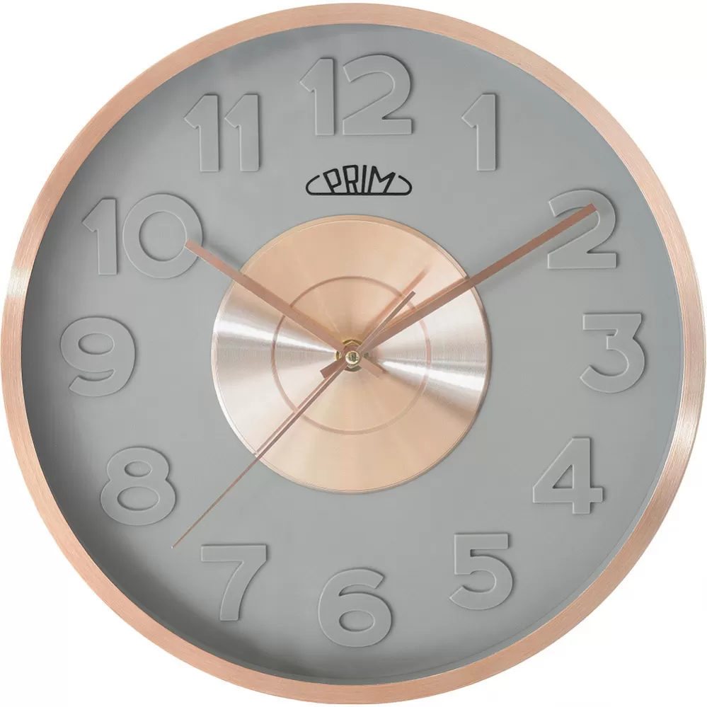 Dizajnové nástenné hodiny PRIM Sensation s priemerom 296 mm so svetelným a zvukovým senzorom v elegantnom ružovom zlatení. Ružovému zlateniu sa nevyhli ani ďalšie komponenty, ktoré perfektne dopĺňa matne strieborný číselník s plastickými arabskými číslicami.