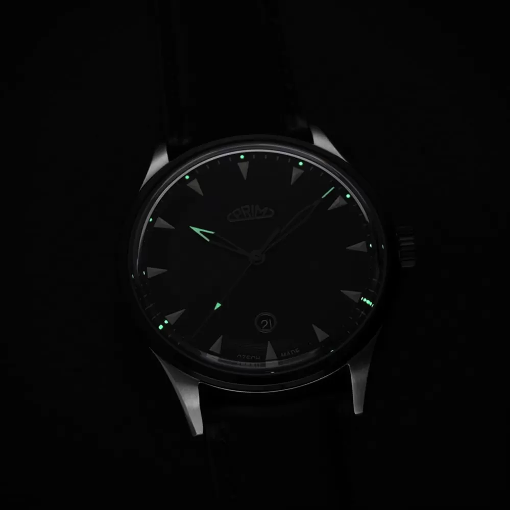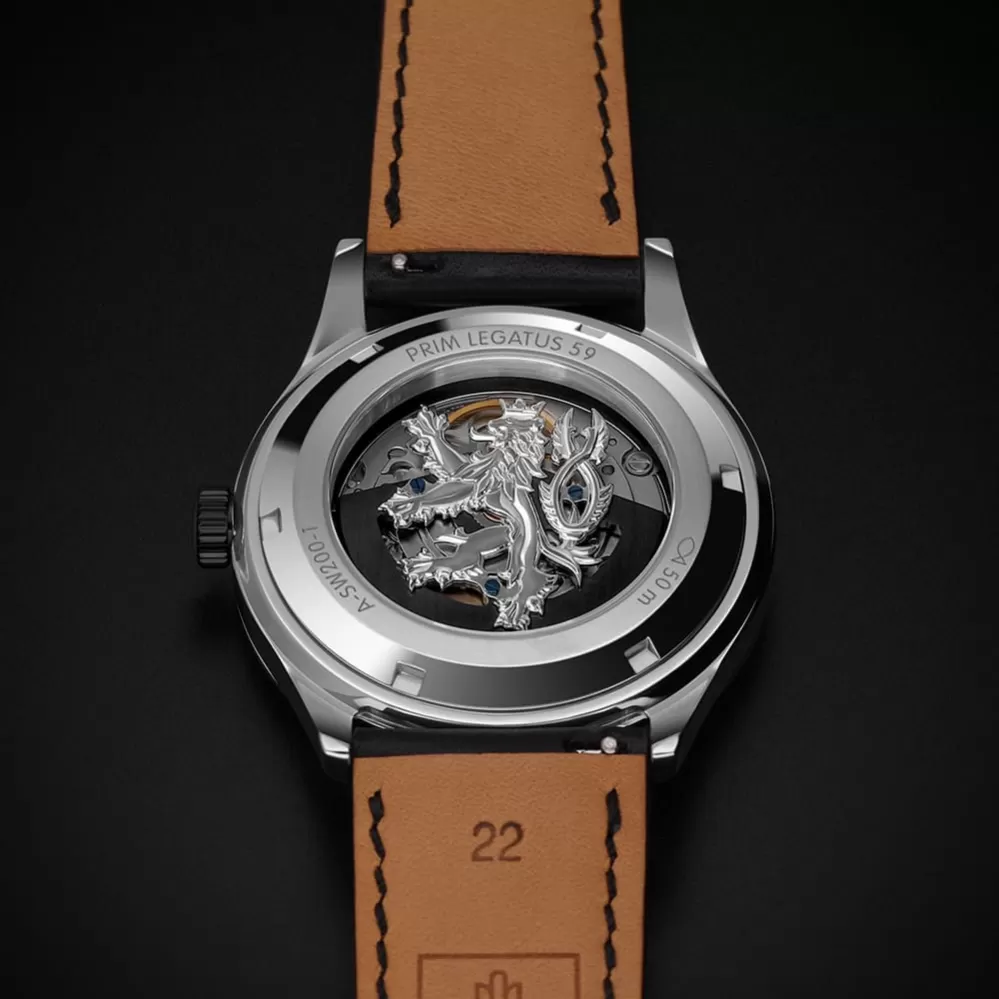 PRIM LEGATUS 59 predstavuje klasiku v novom poňatí, ktorá sa hodí do divadla, na obchodné schôdzky aj na každodenné nosenie. Vďaka luminiscenčným prvkom na číselníku a rúčkach ľahko prečítate čas aj za šera av noci. Zafírové konvexné sklo obmedzuje odlesky a zaisťuje vysokú čitateľnosť aj komfort pri pohľade na ciferník. Vnútri pracuje spoľahlivý švajčiarsky kaliber Sellita SW200-1 s rotorom zdobeným českým levom, ktorý je viditeľný priehľadom vo veku. Hodinky sú vodeodolné do 5 ATM a dostupné v niekoľkých farebných variantoch. Súčasťou balenia je kovový ťah aj zladený kožený remienok, ktoré podčiarkujú ich nadčasový spoločenský štýl.