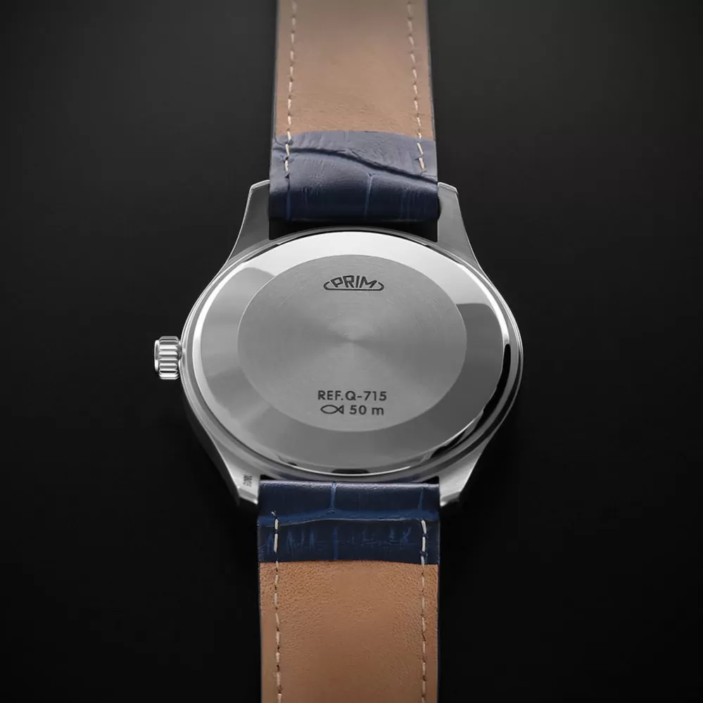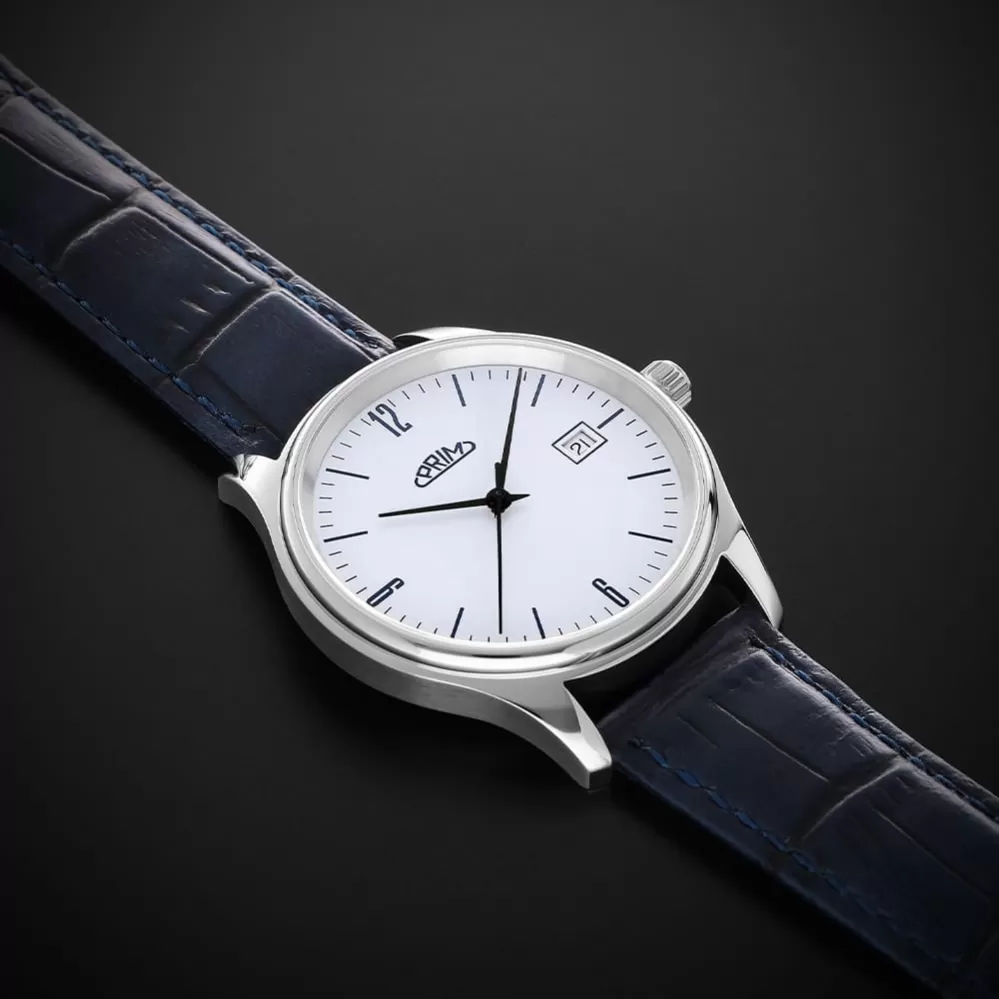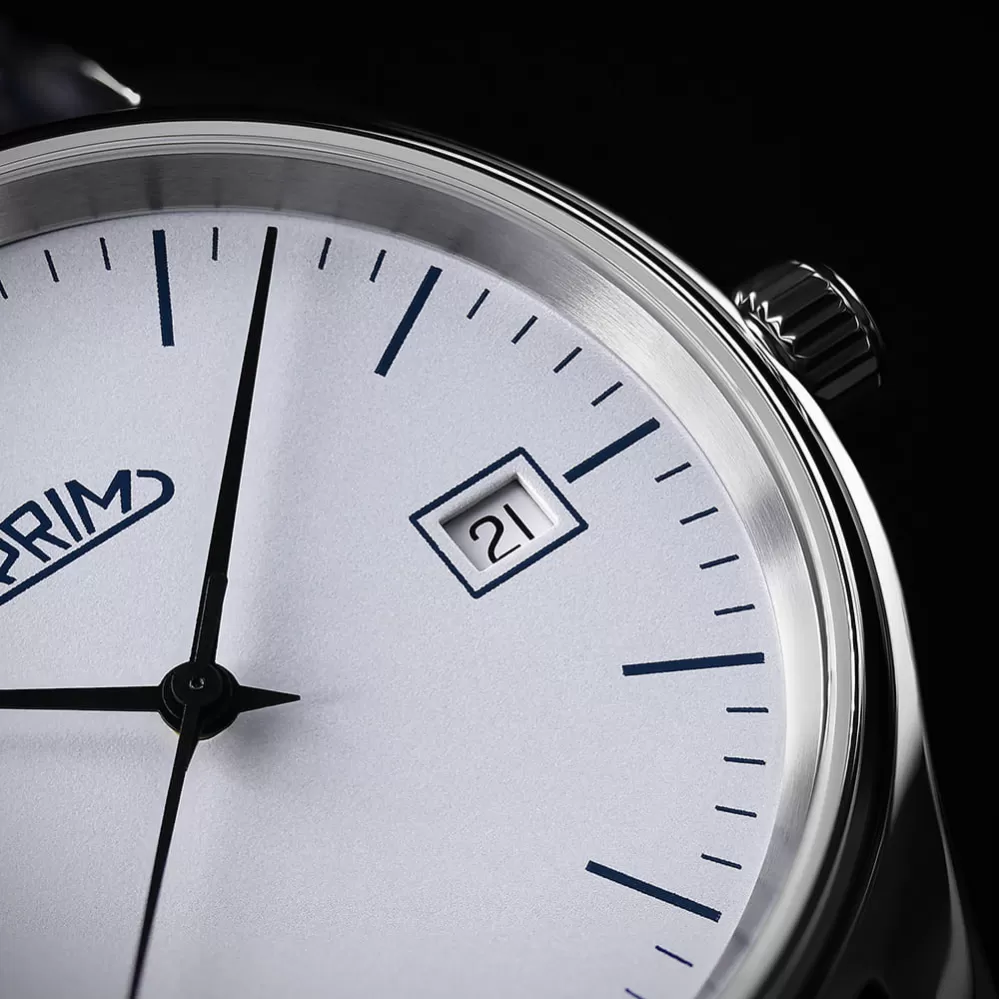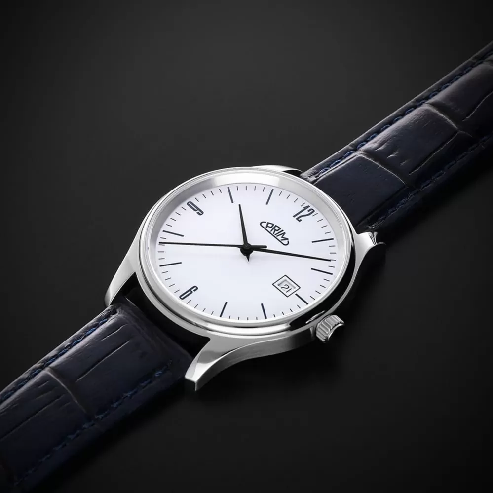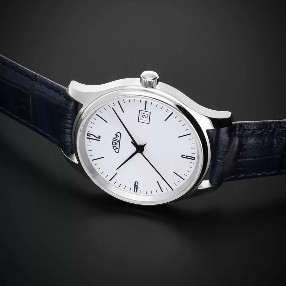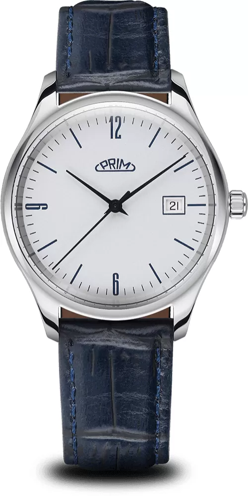 Nastal čas a naši dizajnéri začali s novým konceptom tohto modelu. Jemné puzdro, dobre čitateľné číslice, dátum a tri farebné varianty ciferníka. Dátum a štýlové štíhle ruky pekne dopĺňajú celkový tón vzhľadu. Logo PRIM sa nachádza v hornej časti.