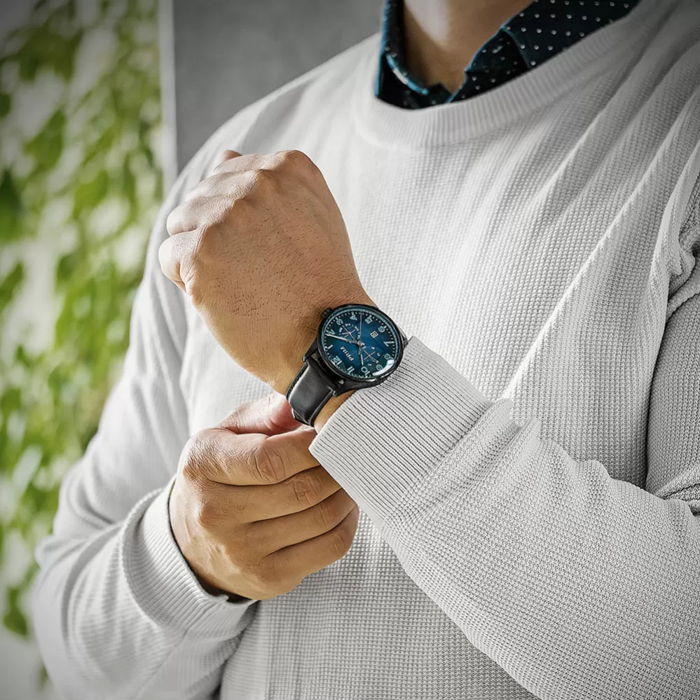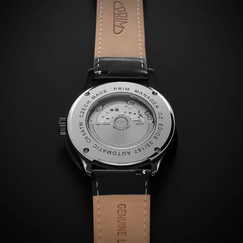 Prim manažér 2025 - športový - Elegantný model v rôznych farbách. Spoľahlivý stroj s kalibrom Miyota 9122, zafírovým sklom a podsvietenými indexmi, ktoré priťahujú ruky každého muža.