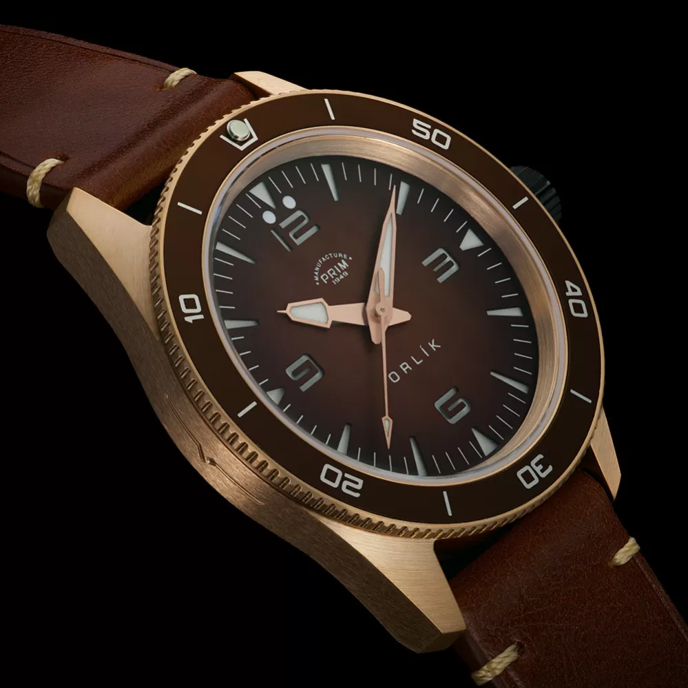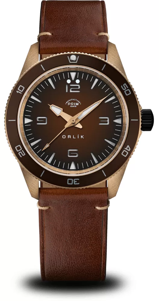 Limitovaná edícia PRIM Orlík 38 Bronz vzdáva hold legendárnemu modelu zo 60. rokov, pôvodne určenému pre československú armádu. Nová verzia zachováva pôvodný priemer 38 mm a verne nadväzuje na historický design. Moderné remeselné spracovanie spája rešpekt k tradícii so súčasnými nárokmi na funkčnosť. Bronzové puzdro prepožičiava hodinkám výrazný a nezameniteľný charakter. Vďaka prirodzenej patine získava každý kus postupom času jedinečný a osobitý vzhľad.