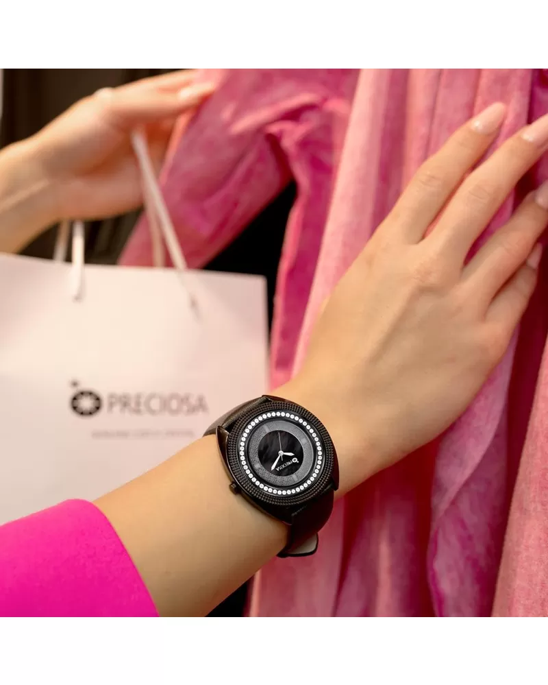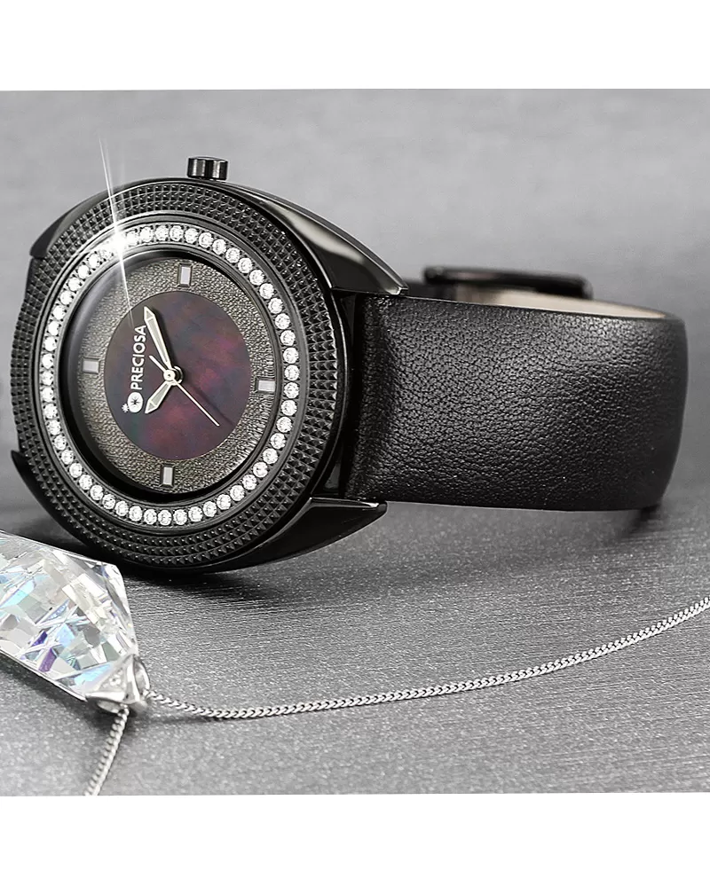 Model Shaula je špeciálna dámska kolekcia hodiniek PRIM Preciosa Charm. Kombinuje netradičné prevedenie puzdra s kubickou zirkóniou Preciosa, ktorú skvele dopĺňa moderný vzorovaný číselník s perleťovým nádychom. Puzdro je vyrobené z ušľachtilej ocele 316 L upravenej leštením do vysokého lesku. Zdobenie puzdra kubickou zirkóniou PRECIOSA je prevedené CNC technológiou, kedy sú kryštály fasované do oceľového puzdra. Eleganciu a šarm hodinkám dodáva remienok z kvalitnej kože. 5 ATM zaručuje odolnosť proti vode pri bežnom používaní.