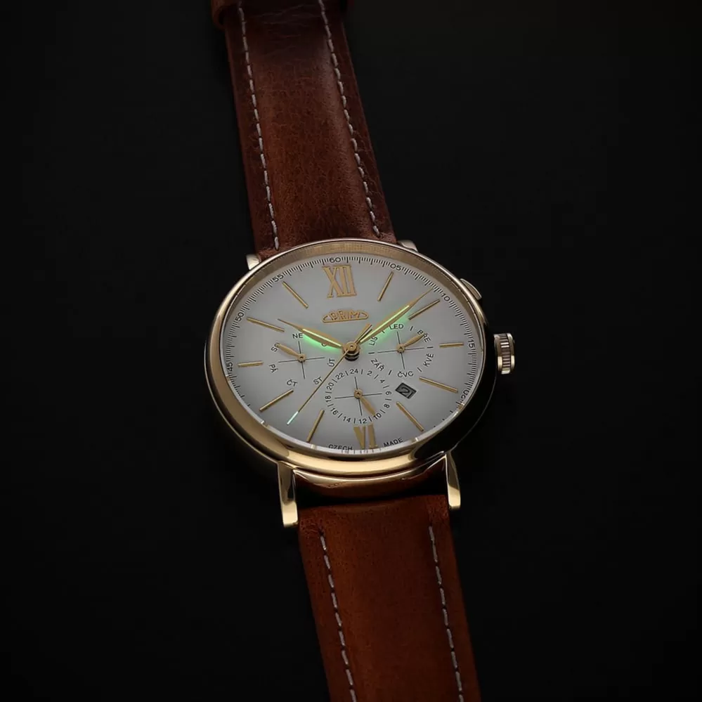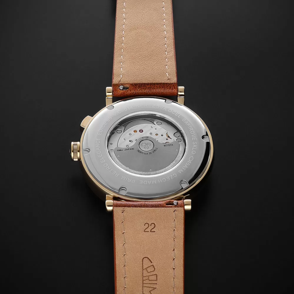 Prim retro elegancia 2025 - Elegantné pánske hodinky s Miyota 9120, zafírové sklo, priehľadné tekvicové a kožené popruhy v rôznych farbách. Klasické v modernom koncepte. Nová kolekcia pánskych hodiniek, ktoré kombinujú čistý dizajn s presným remeslom.
