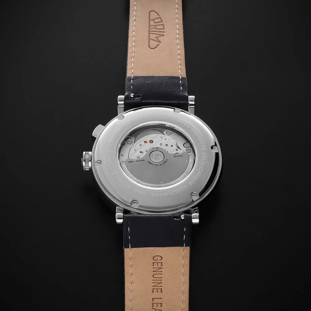 Prim retro elegancia 2025 - Elegantné pánske hodinky s Miyota 9120, zafírové sklo, priehľadné tekvicové a kožené popruhy v rôznych farbách. Klasické v modernom koncepte. Nová kolekcia pánskych hodiniek, ktoré kombinujú čistý dizajn s presným remeslom.