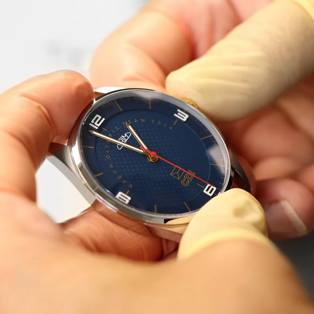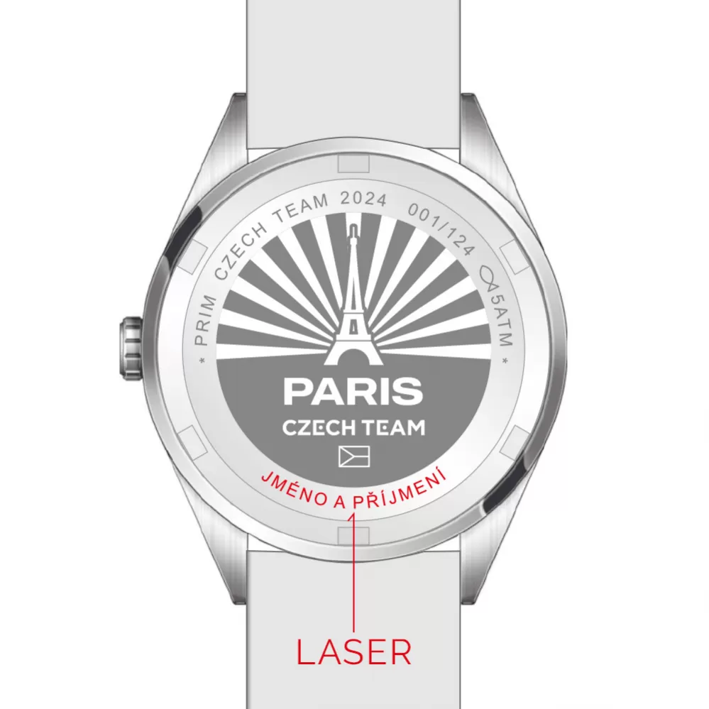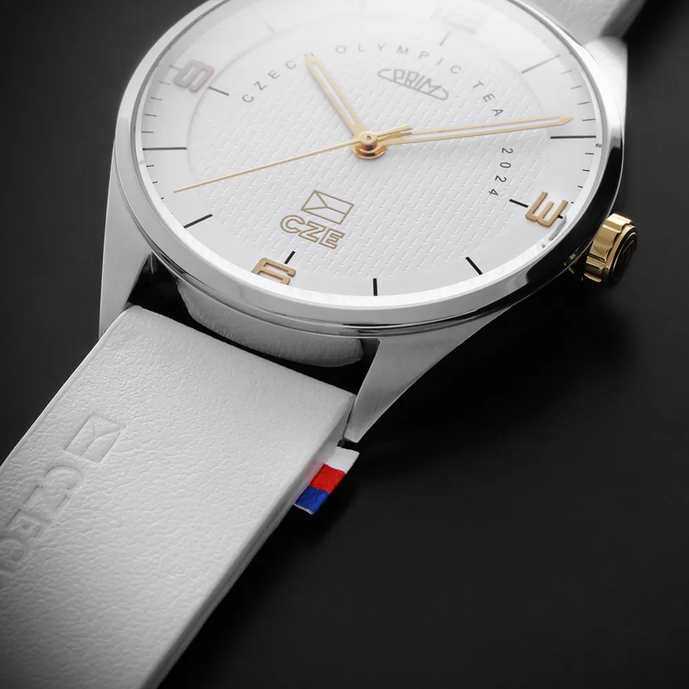 Českí reprezentanti si budú opäť merať čas originálnymi hodinkami PRIM, tentoraz pri letných olympijských hrách v Paríži 2024. Tento elegantný model, inšpirovaný históriou Českej republiky, má výrazné čísla na štyroch hodinových pozíciách a plastický ciferník s tematickou symbolikou. Po zakúpení hodiniek budú individualizované menom vlastníka, ktoré uvediete v poznámke pri objednávke, a odoslané do 1-2 pracovných dní. Dizajn ciferníka, inšpirovaný zbierkou básní Václava Havla - Antikódy, obsahuje grafiku výkričníkov a jedného otáznika, symbolizujúceho prípravy a sen o účasti na Olympijských hrách. Hodinky sú poháňané švajčiarskym quartzovým strojčekom Ronda 763 a majú púzdro z nerezovej ocele 316L s kombináciou leštených a brúsených prvkov. Zafírové vypuklé sklo s antireflexnou úpravou a vodeodolnosť 5 ATM zaisťujú odolnosť pri bežnom použití. Hodinky sú dodávané s koženým remienkom s logom CZECH TEAM a je možné dokúpiť aj športový silikónový remienok.