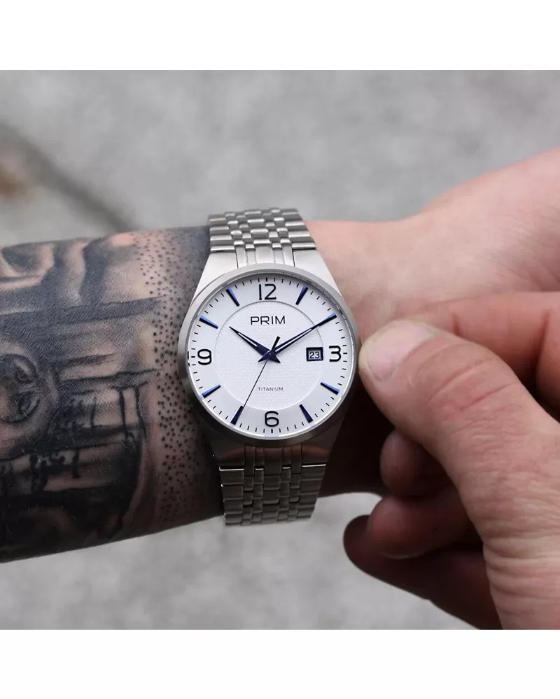 Ste alergik? A nemôžete zohnať hodinky, ktoré by vám vyhovovali? Tieto hodinky sú vyrobené z brúseného antialergického titánu, následne upravené do matného a lešteného vzhľadu. Do puzdra je vsadený quartzový strojček kaliber Miyota 1S13. Určite vás poteší veľmi prehľadný ciferník, ktorý zdobia jednoduché indexy hodín a arabské číslice. Ďalej luminiscenčné ručičky a quartz strojček s dátumom, ktorý je umiestnený pri troch hodinách. Ciferník chráni zafírové sklíčko, ktoré, ako je známe, je veľmi odolné. Hodinky ako celok pôsobia veľmi luxusne.
