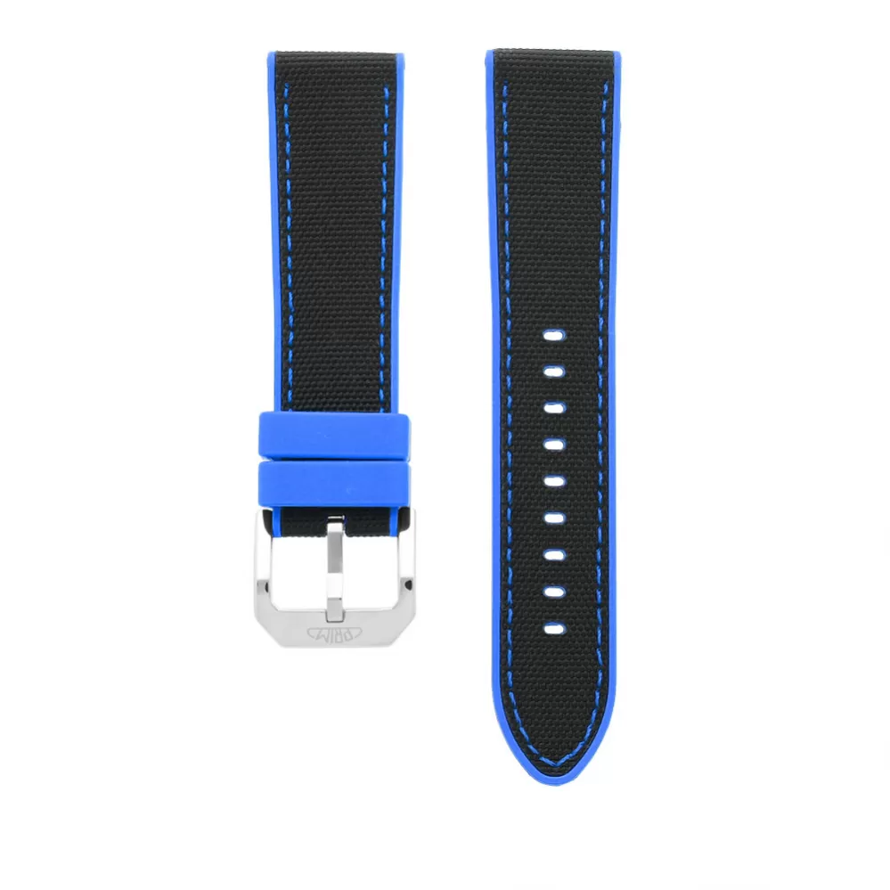 Významný športový remienok vyrobený z hybridného materiálu Sailcloth FKM O modeli hodiniek Prim cyklovanie 25. FKM je jedným z najodolnejších a najpohodlnejších materiálov kombinujúcich luxusný vzhľad, extrémnu výdrž a pohodlie dokonca aj pri vysokých nákladoch.