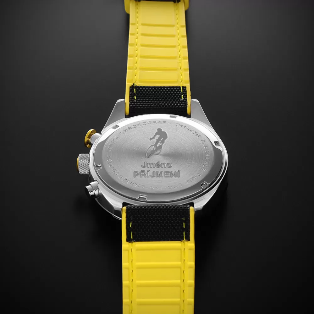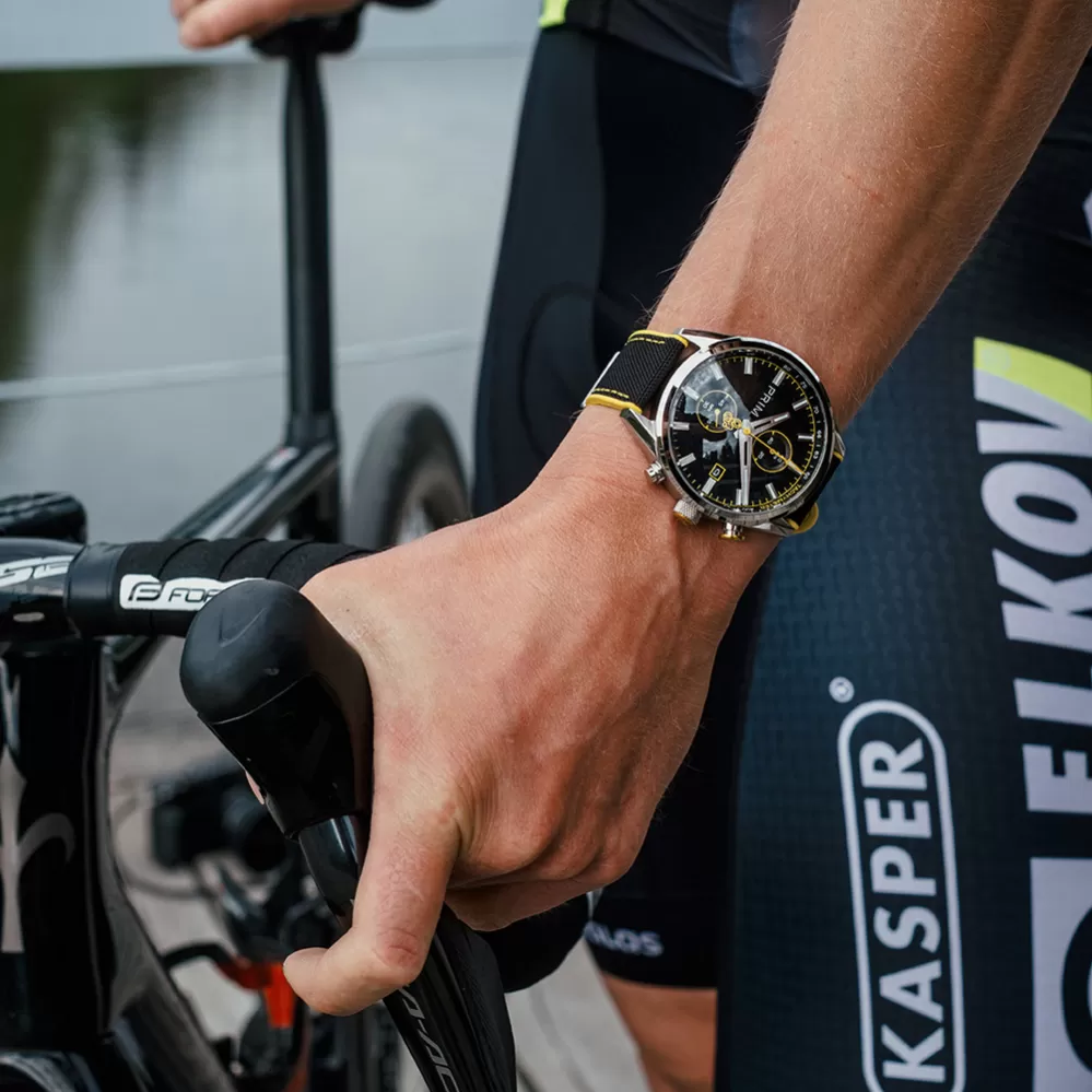 Tento športový model s dátumovou pečiatkou a chronografom a funkciami stopwatch je vybavený japonským pohybom Miyota 6S11, čo umožňuje meranie minulého času až do 60 minút s presnosťou 1/4 sekundy . Rovnako ako cyklistika, aj to je rovnováha medzi silou, vytrvalosťou a rytmom.