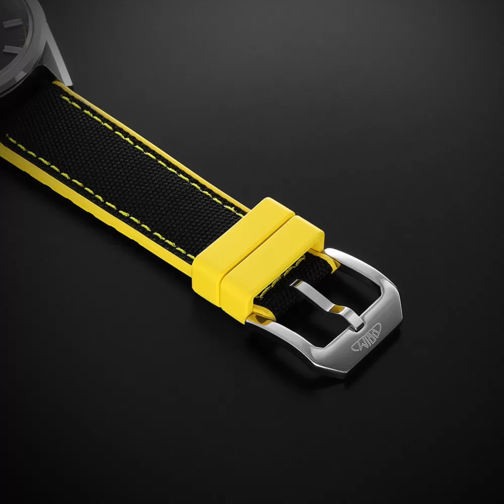 V prípade zamatového jemného pocitu nosenia sme si vybrali remienok FKM, ktorý vyniká jeho hypoalergénnym znakom a odolnosťou voči teplu, potu a chemikáliám. V kombinácii s textilnou vrstvou vyzerá športovo, ale zároveň luxusne.