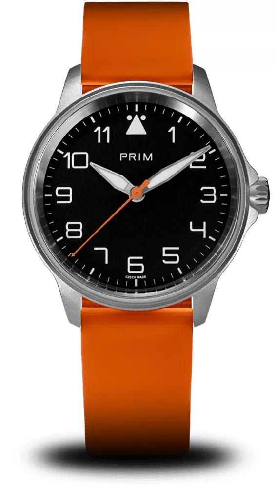 Na číselníku dominujú výrazné číslice vo fonte PRIM a typický trojuholníček s bodkami na pozícii 12. hodiny. Rúčky s veľkou luminiscenčnou plochou a výrazná sekundová rúčka so šípkou zaisťujú vynikajúcu čitateľnosť aj za zhoršených podmienok.