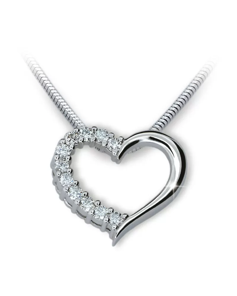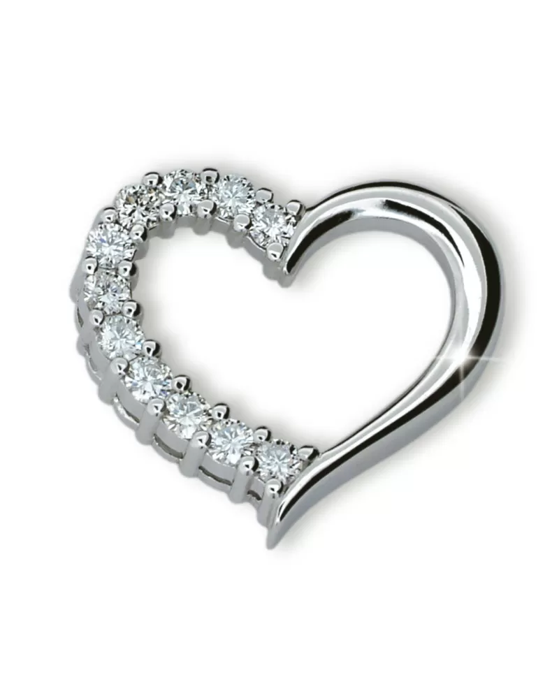 Elegantný prívesok - srdce s bielymi zirkónmi z bieleho štrnástikarátového zlata 585/000 v lesklej povrchovej úprave. Prívesok je možné kúpiť s… Celý popis
