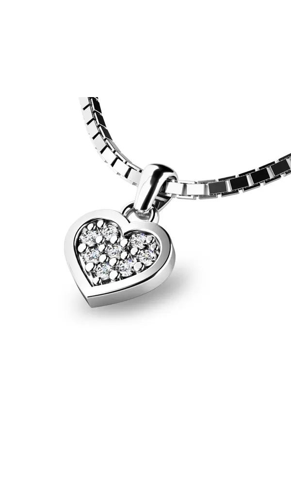 Prívesok z bieleho štrnásťkarátového zlata - 585/1000 v lesklej povrchovej úprave v tvare srdca s ôsmimi zirkónmi z kolekcie Exclusive je dokonalým… Celý popis