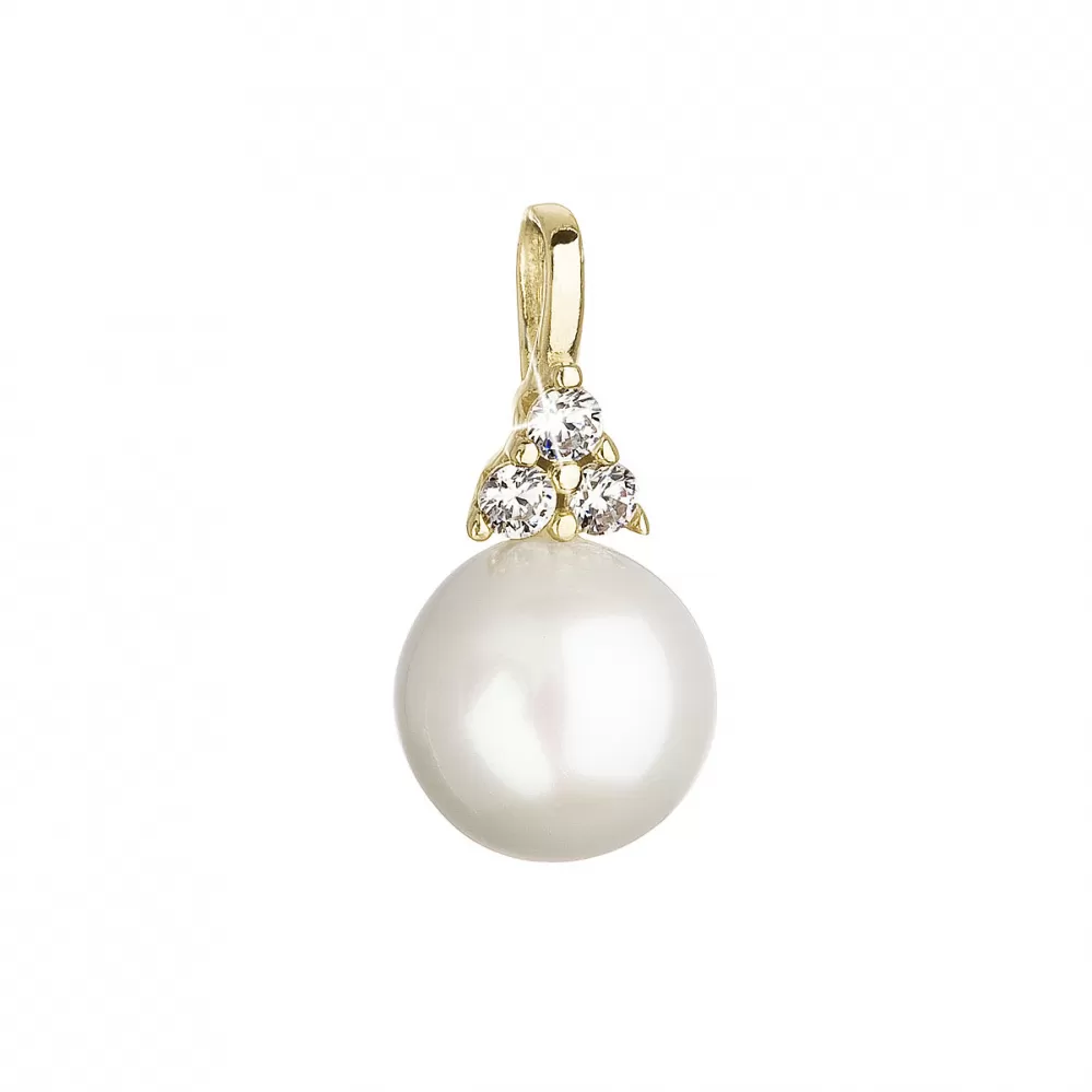 Zlatý 14 karátový prívesok žlté zlato s bielou riečnou perlou a tromi zirkónmi 94PZ00005