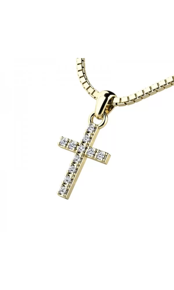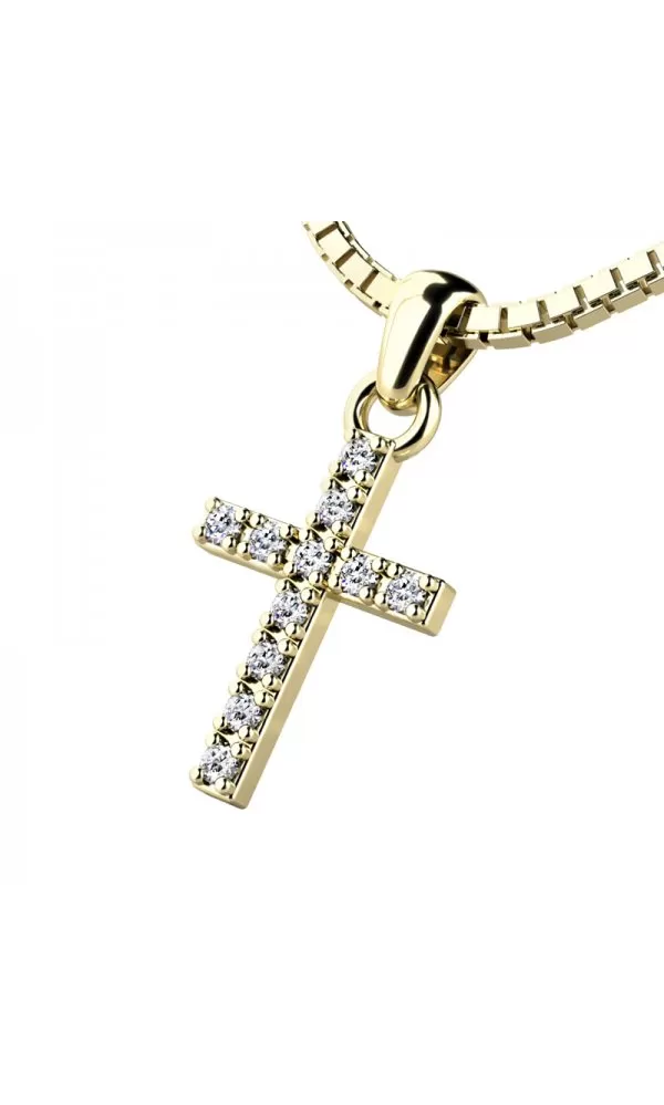 Tento prívesok je nielen krásnym doplnkom, ale aj výnimočným vyjadrením osobného štýlu a vyznania. Ideálne na každodenné nosenie alebo ako výrazné vyjadrenie viery, skrátka šperk, ktorý priťahuje pozornosť svojim unikátnym spojením krásy a symboliky. Krížik je vyrobený zo žltého štrnásťkarátového zlata - 585/1000 v lesklej povrchovej úprave. V krížiku je vsadených 11 ks okrúhlych zirkónov.