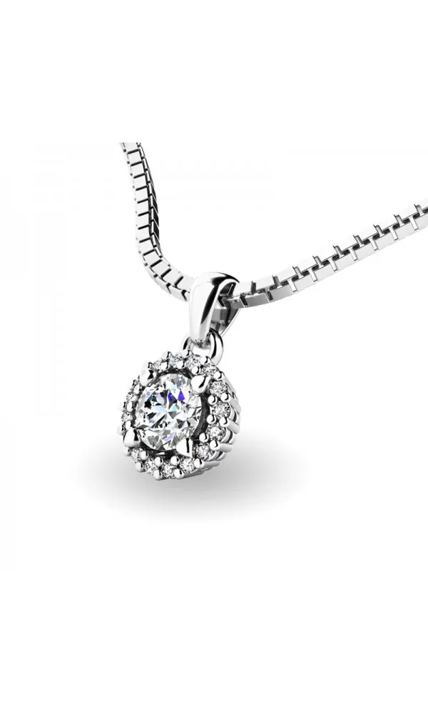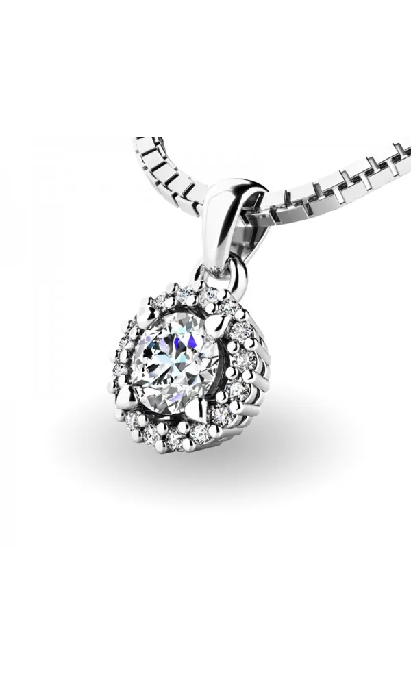 Náš zlatý prívesok prináša nádherný lesk a sofistikovaný dizajn do vašej šperkovnice. Tento klenot v tvare prívesku sa pýši veľkým stredovým zirkónom, ktorý priťahuje pohľad svojou jasnosťou a bezchybným brilom. Okolo neho sú potom vkusne usporiadané drobné zirkóny, ktoré tvoria korunu luxusu a jemnosti. Prívesok je vyrobený z bieleho štrnásťkarátového zlata - 585/1000 v lesklej povrchovej úprave. Priveďte do svojho života nádych luxusu s týmto exkluzívnym zlatým príveskom, ktorý je viac než len šperk – je to výraz vášho jedinečného štýlu.
