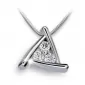 Prívesok s tromi bielymi zirkónmi z bieleho štrnástich karátového zlata 585/1000 v lesklej povrchovej úprave. Prívesok má očko na retiazku priamo v sebe.