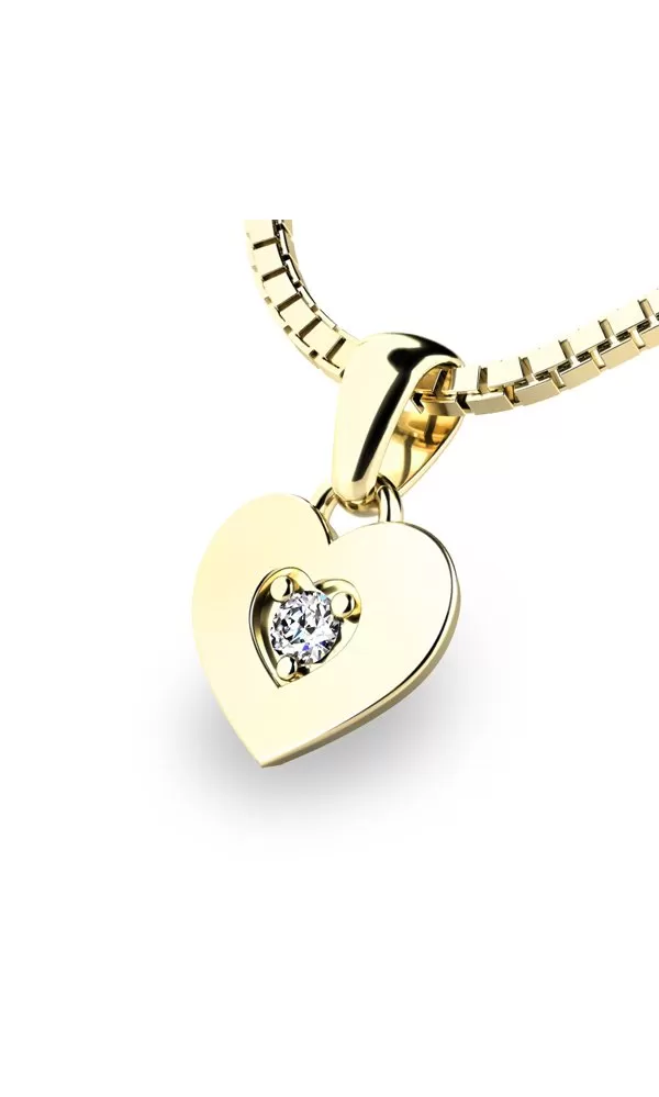 Elegantný prívesok v tvare srdca je vyrobený zo žltého štrnásťkarátového zlata - 585/1000 v lesklej povrchovej úprave. Povrch srdiečka je mierne bombírovaný - prehnutý a je doň vsadený jeden zirkón s briliantovým výbrusom, ktorý dáva zirkónu maximálny lesk a brilanciu z každého uhla!  Priveďte do svojho života nádych luxusu s týmto exkluzívnym zlatým príveskom, ktorý je viac ako len šperk – je to výraz vášho jedinečného štýlu. Vďaka dokonalému vsadeniu a precíznej práci našich zlatníkov, ktorí pracujú ručne pod mikroskopom s presnosťou na 0,01 mm, sa nemusíte obávať o vypadnutie kamienkov. Každý detail tohto prívesku je starostlivo spracovaný, aby vám poskytol nielen žiarivý vzhľad, ale aj istotu kvality a trvanlivosti.