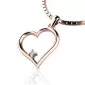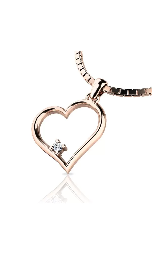 Pre ženy čo obľubujú decentné luxusné šperky tu máme jeden jemný prívesok v tvare srdca zdobený zirkónom. V srdiečku je vsadený jeden okrúhly zirkón briliantového brusu a pevne uchytený štyrmi krapnami. Briliantový brús im dodáva dokonalú brilanciu, skvele odráža svetlo a žiari z každého uhla pohľadu! Vsadzovanie zirkónov vykonávajú naši najskúsenejší majstri zlatníci ručne pod mikroskopom s presnosťou na 0,01 mm a preto nehrozí vypadnutie kamienkov ako to býva u strojne vyrábaných náušníc.  Tento nádherný, žiarivý prívesok je vyrobený z ružového štrnásťkarátového zlata - 585/1000 v lesklej povrchovej úprave. Každý detail tohto prívesku je starostlivo spracovaný, aby vám poskytol nielen žiarivý vzhľad, ale aj istotu kvality a trvanlivosti. S týmto exkluzívnym príveskom v tvare srdca urobíte dojem a zanecháte nezabudnuteľný dojem na každom stretnutí.