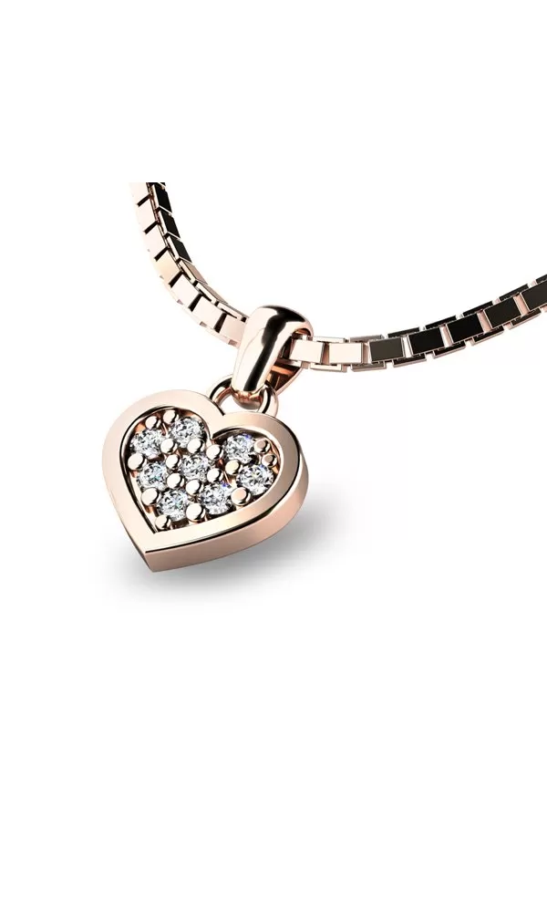 Chcete zapôsobiť na vašu druhú polovičku? Rozžiarte jej dekolt príveskom v tvare srdca.  Tento nádherný, žiarivý prívesok je vyrobený z ružového štrnásťkarátového zlata - 585/1000 v lesklej povrchovej úprave. Buďte v centre pozornosti s týmto šperkom, ktorý nielenže ozdobí vašu krásu, ale taktiež podčiarkuje vašu individualitu. Priveďte do svojho života nádych luxusu s týmto exkluzívnym zlatým príveskom, ktorý je viac ako len šperk – je to výraz vášho jedinečného štýlu. Vďaka dokonalému vsadeniu a precíznej práci našich zlatníkov, ktorí pracujú ručne pod mikroskopom s presnosťou na 0,01 mm, sa nemusíte obávať o vypadnutie kamienkov. Každý detail tohto prívesku je starostlivo spracovaný, aby vám poskytol nielen žiarivý vzhľad, ale aj istotu kvality a trvanlivosti.