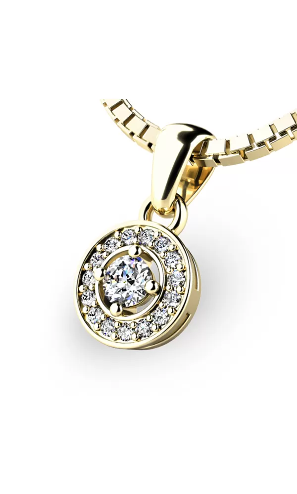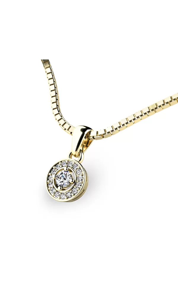 Chcete zapôsobiť na vašu druhú polovičku? S týmto nádherným briliantovým príveskom sa Vám to určite podarí! Prívesok je vyrobený z bieleho štrnásťkarátového zlata - 585/1000 v lesklej povrchovej úprave. V prívesku je vsadených šestnásť diamantov v briliantovom bruse, uprostred jeden väčší centrálny diamant, ktorý obklopuje pätnásť menších diamantov. Briliantový výbrus dáva diamantom maximálny lesk a brilanciu z každého uhla! Skvele odráža svetlo a september!