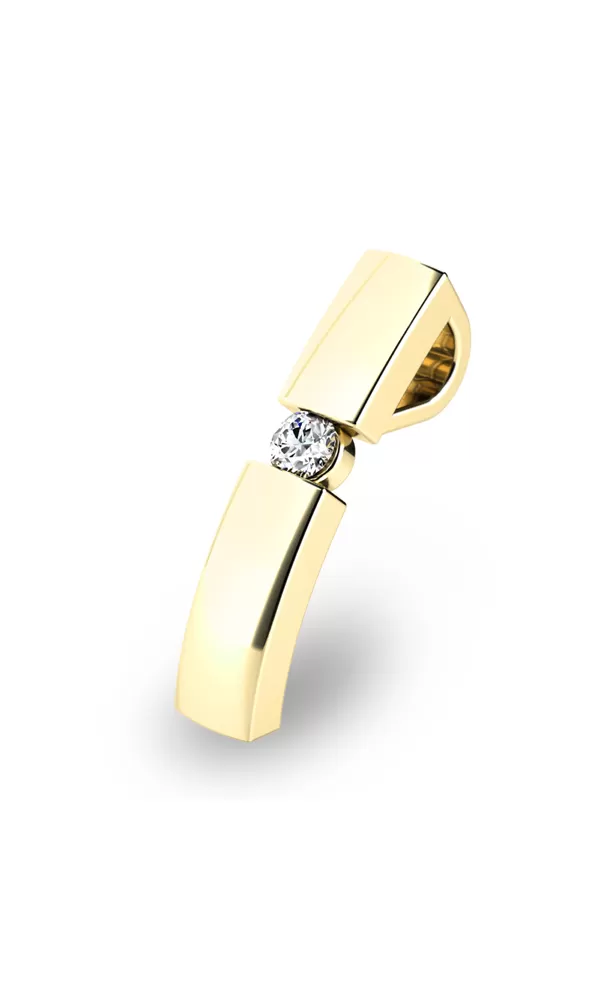 Módny prívesok Vás osloví diamantom, ktorý je vsadený uprostred prívesku. Diamant je v briliantovom bruse, vďaka ktorému dokonale odráža svetlo a neuveriteľne žiari. Taký šperk vám vydrží večnosť. Tento nádherný prívesok je vyrobený zo žltého štrnásťkarátového zlata - 585/1000 v lesklej povrchovej úprave.