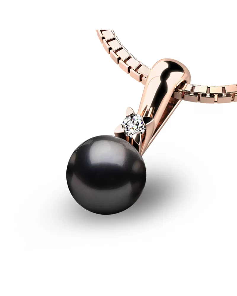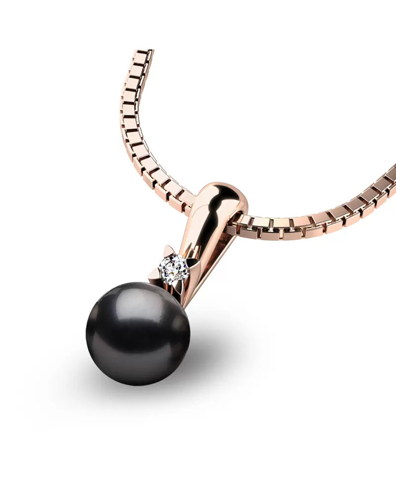 Přívěsek je vyrobený z růžového čtrnáctikarátového zlata - 585/1000 v lesklé povrchové úpravě a zdobí ho sladkovodní perla v černé barvě Laser Black a diamant. Diamant je vybroušený briliantovým brusem, který zajišťuje maximální brilanci vybroušených facet, dokonale odráží světlo a neuvěřitelně září z každého úhlu pohledu!  Vsazování diamantů provádějí naši nejzkušenější mistři zlatníci ručně pod mikroskopem s přesností na 0,01mm a proto nehrozí vypadnutí kamínků jako to bývá u strojně vyráběných náušnic.