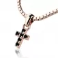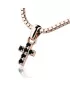 Prívesok v tvare krížika je v celej ploche posádzaný čiernymi diamantmi a je vyrobený z ružového štrnáctikarátového zlata - 585/1000 v lesklej povrchovej úprave. pod mikroskopom s presnosťou na 0,01mm a preto nehrozí vypadnutie kamienkov ako to býva u strojne vyrábaných príveskov.