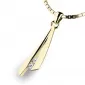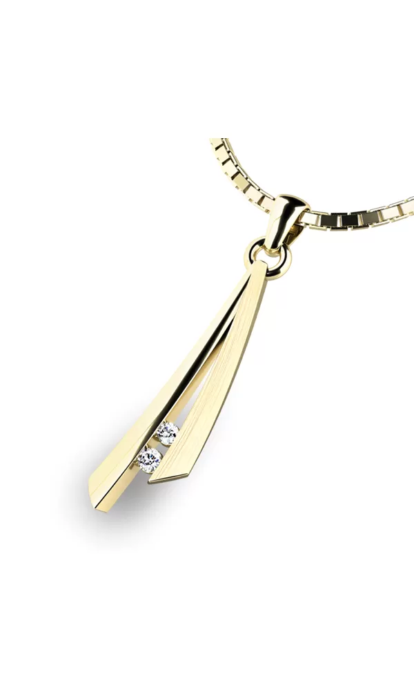 Originálny vzhľad tohto prívesku s diamantmi zaujme nejednu ženu. Diamant je najtvrdší známy prírodný nerast. Môže sa pýšiť skvelými vlastnosťami a určite sa oplatí do neho investovať. Tento nádherný prívesok je vyrobený zo žltého štrnásťkarátového zlata - 585/1000 v kombinácii lesklej a matnej povrchovej úprave. Prívesok je zdobený dvoma diamantmi briliantového brusu, ktoré sú vsadené uprostred prívesku. Vďaka precíznemu brúsu diamanty získajú dokonalú brilanciu. Skvele odráža svetlo a september.