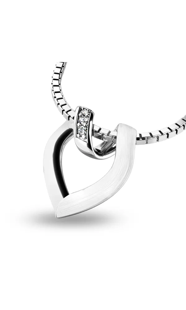 Presne vieme čo potrebujete. Hľadáte dokonalý šperk, ktorý vykúzli úsmev na tvári. Tento nádherný, žiarivý prívesok je vyrobený z bieleho štrnásťkarátového zlata - 585/1000 v lesklej povrchovej úprave. Prívesok v tvare srdca nemá očko a retiazka prelieza priamo cez neho. Srdce je zdobené diamantmi v briliantovom bruse.