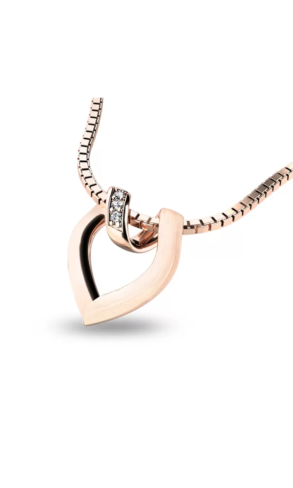 Presne vieme čo potrebujete. Hľadáte dokonalý šperk, ktorý vykúzli úsmev na tvári. Tento nádherný, žiarivý prívesok je vyrobený z ružového štrnásťkarátového zlata - 585/1000 v lesklej povrchovej úprave. Prívesok v tvare srdca nemá očko a retiazka prelieza priamo cez neho. Srdce je zdobené diamantmi v briliantovom bruse.