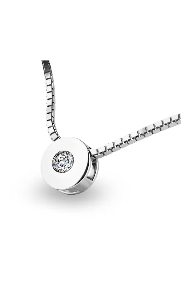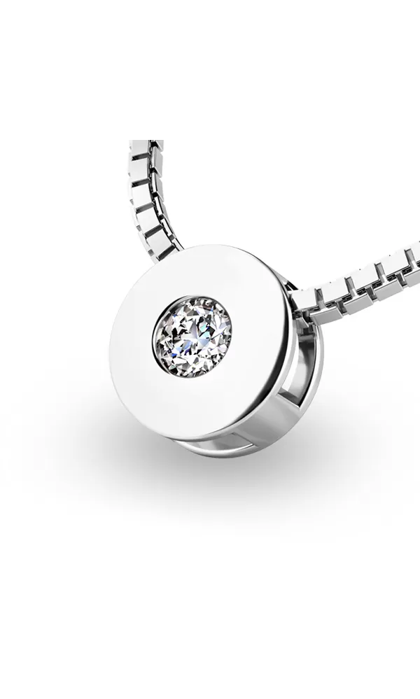 Briliantový šperk neodmietne žiadna žena. Tento elegantný prívesok jednoduchého dizajnu je zdobený jedným okrúhlym diamantom. Na jeho výrobu bolo použité biele štrnásťkarátové zlato - 585/1000. Povrchová úprava je vykonaná vo vysokom lesku. Diamant je v briliantovom bruse, vďaka ktorému dokonale odráža svetlo a neuveriteľne žiari!
