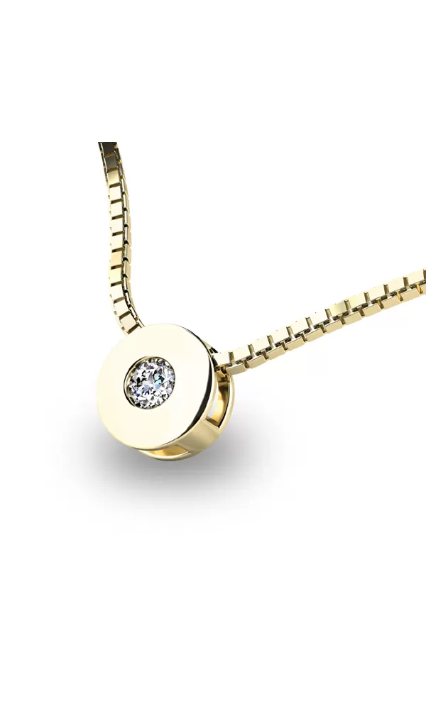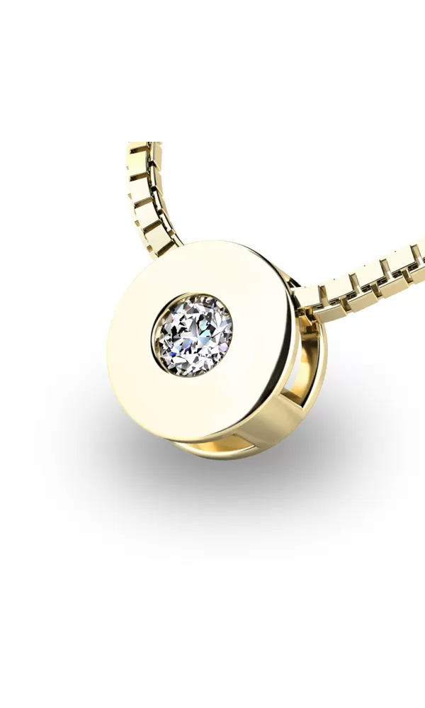 Briliantový šperk neodmietne žiadna žena! Tento elegantný prívesok jednoduchého dizajnu je zdobený jedným okrúhlym diamantom. Na jeho výrobu bolo použité žlté štrnásťkarátové zlato - 585/1000. Povrchová úprava je vykonaná vo vysokom lesku. Diamant je v briliantovom bruse, vďaka ktorému dokonale odráža svetlo a neuveriteľne žiari!
