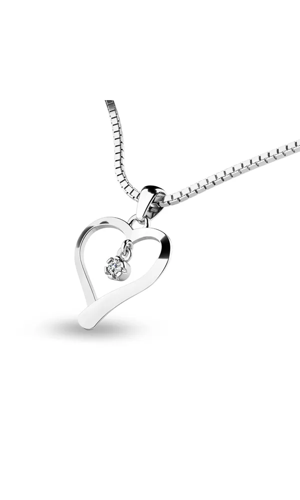 Originálny vzhľad tohto prívesku s diamantmi zaujme nejednu ženu. Prívesok v tvare srdiečka je vyrobený z bieleho štrnásťkarátového zlata - 585/1000 v lesklej povrchovej úprave. Diamant v okrúhlom briliantovom bruse je v srdiečku zavesený "na voľno" v ozdobnej obrube - korunke a je pohyblivý. Vďaka precíznemu briliantovému brusu diamant získal dokonalú brilanciu. Skvele odráža svetlo a september!