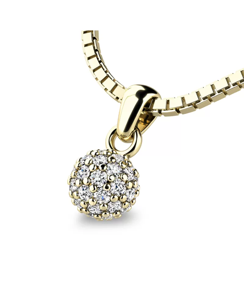 Guľôčka je v celej ploche posádzaná diamantmi, vďaka skladbe a štýlovo čistému vsadeniu diamantov vyniká guľôčka krásnou brilanciou kameňov! , ktorý zaisťuje maximálnu brilanciu vybrúsených facet, dokonale odráža svetlo a krásne žiari z každého uhla pohľadu! >
