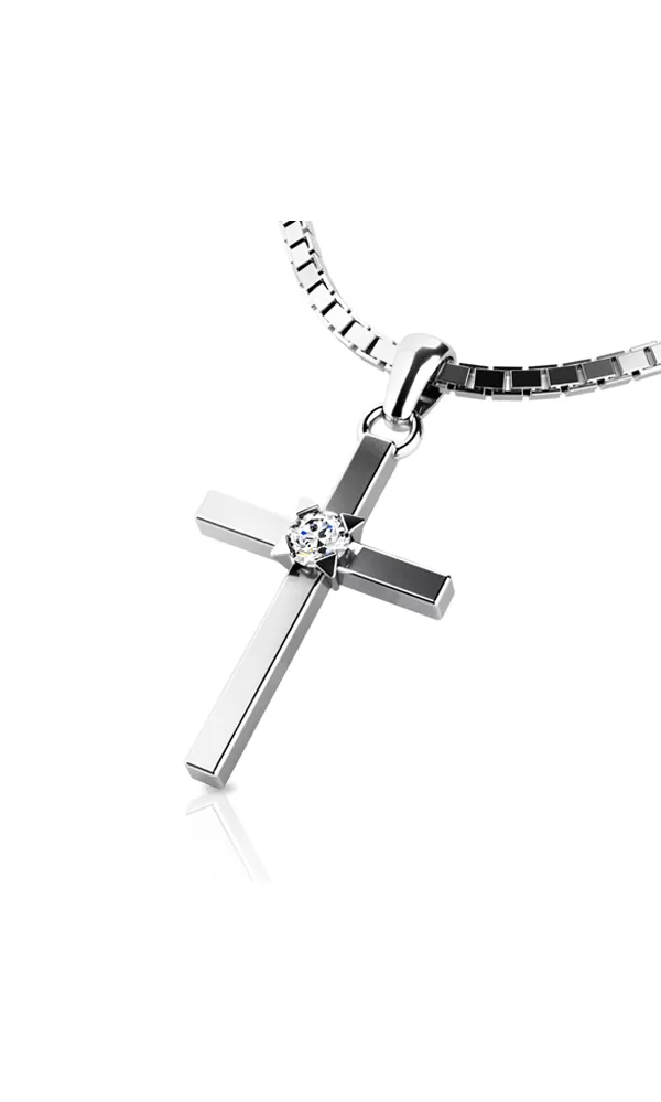 Veľmi obľúbené prívesky v tvare kríža naši zlatníci povýšili o niečo vyššie keď do prívesku vložili diamant briliantového brusu pevne uchytený štyrmi krapnami. Krížik pôsobí veľmi luxusne a decentne. Prívesok je vyrobený z bieleho štrnásťkarátového zlata - 585/1000 v lesklej povrchovej úprave.
