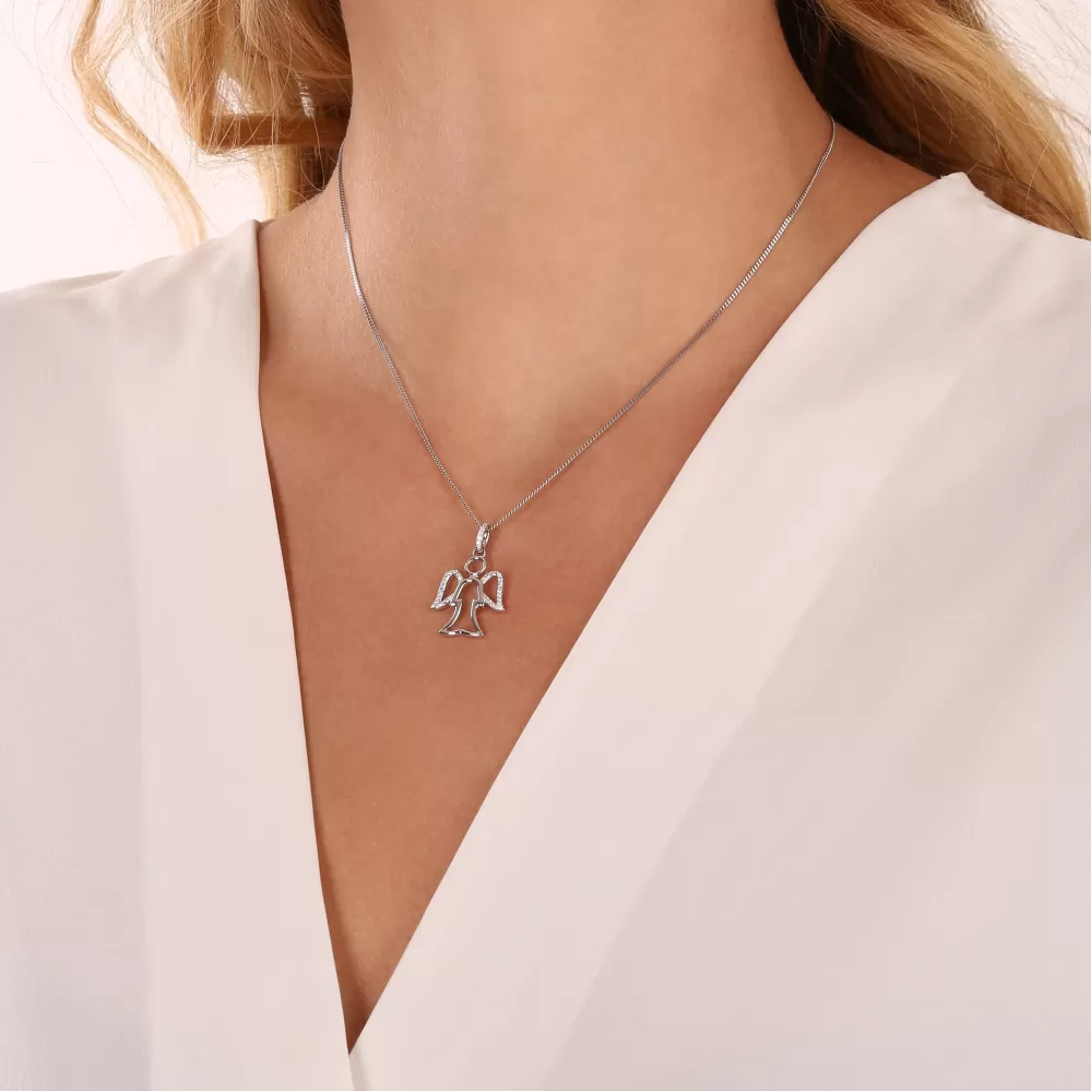 Strieborný prívesok v podobe nežného anjelika bude krásnou ozdobou pre každú ženu. Tento krehký skvost stvárňuje zirkóny ozdobené krídla rozpäté k ochrannému objatiu.