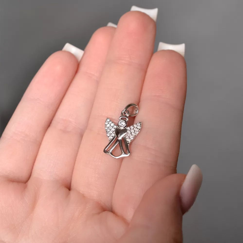 Strieborný prívesok anjel so zirkónmi biely 14027.1