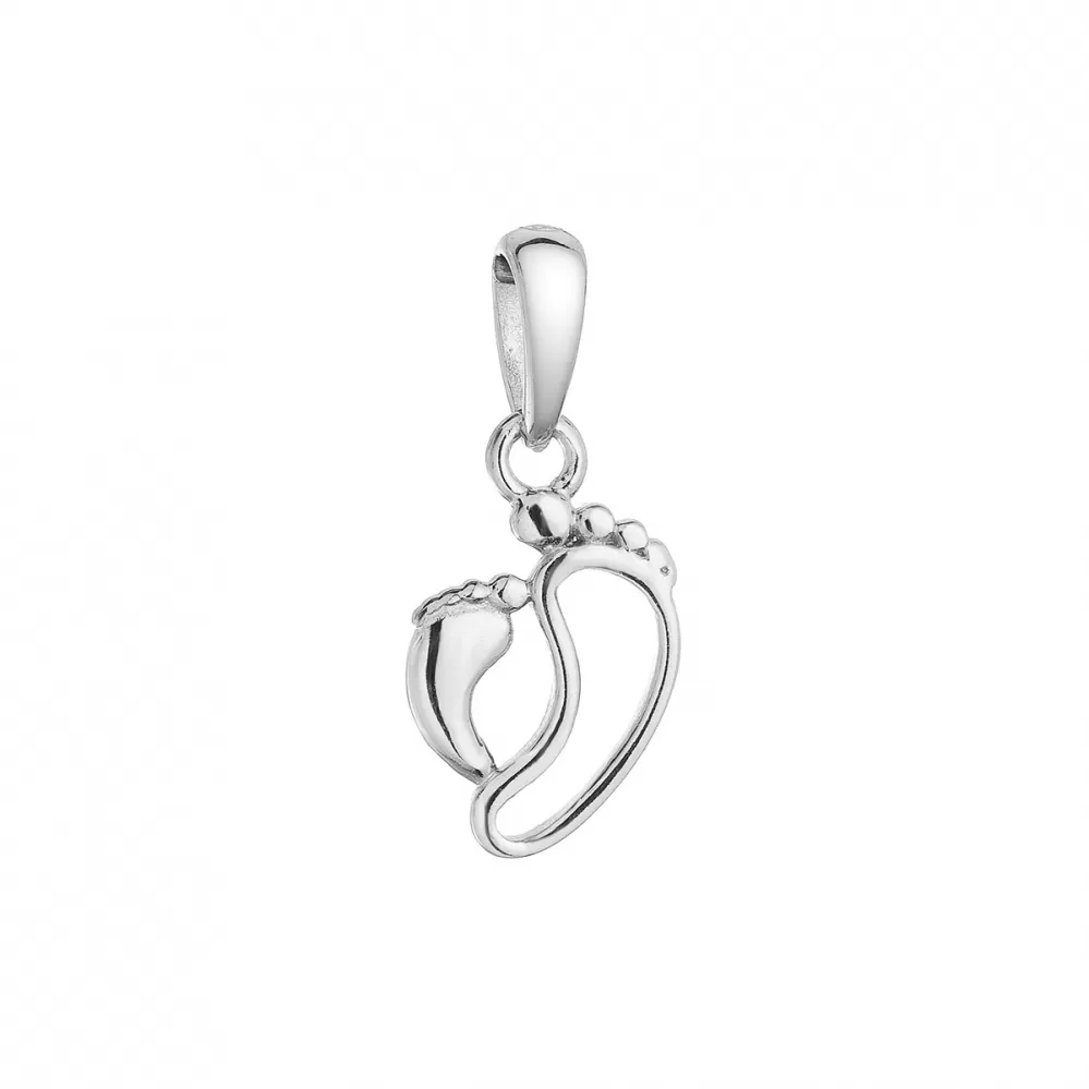 Strieborný prívesok 64005 v tvare chodidiel je vyrobený zo striebra s rýdzosťou 925/1000 vrátane povrchovej úpravy ródiom. Ródium ochráni šperk proti nechcenému sčernaniu, zožltnutiu i poškriabaniu.