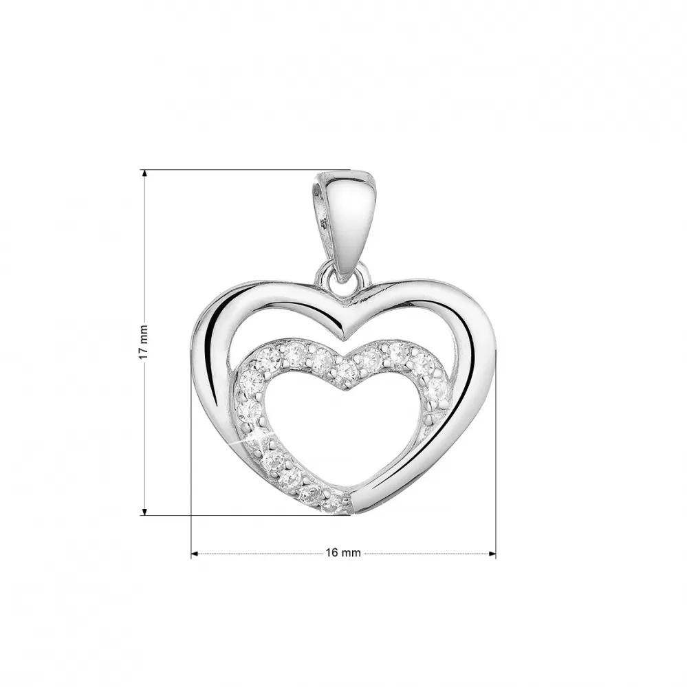 Strieborný prívesok dve srdiečka so zirkónmi bielej 14021.1