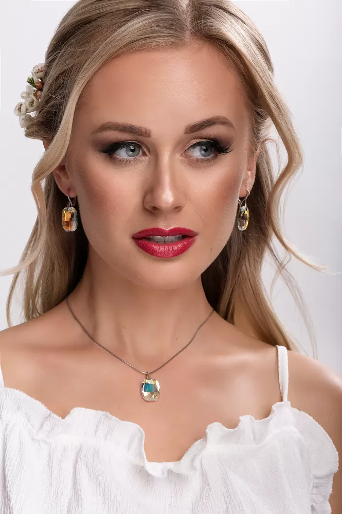 Parametre strieborného prívesku s kryštálmi Swarovski ab efekt obdĺžnik 34254.2