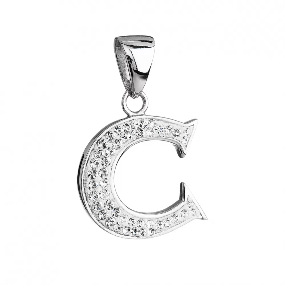 Strieborný prívesok s kryštálmi Swarovski biele písmeno C 34102.1