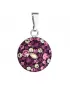 Strieborný okrúhly prívesok 34225.3 má priemer 14 mm a je zdobený mnohými malými okrúhlymi Swarovski kryštálmi vo fialových farbách. Na