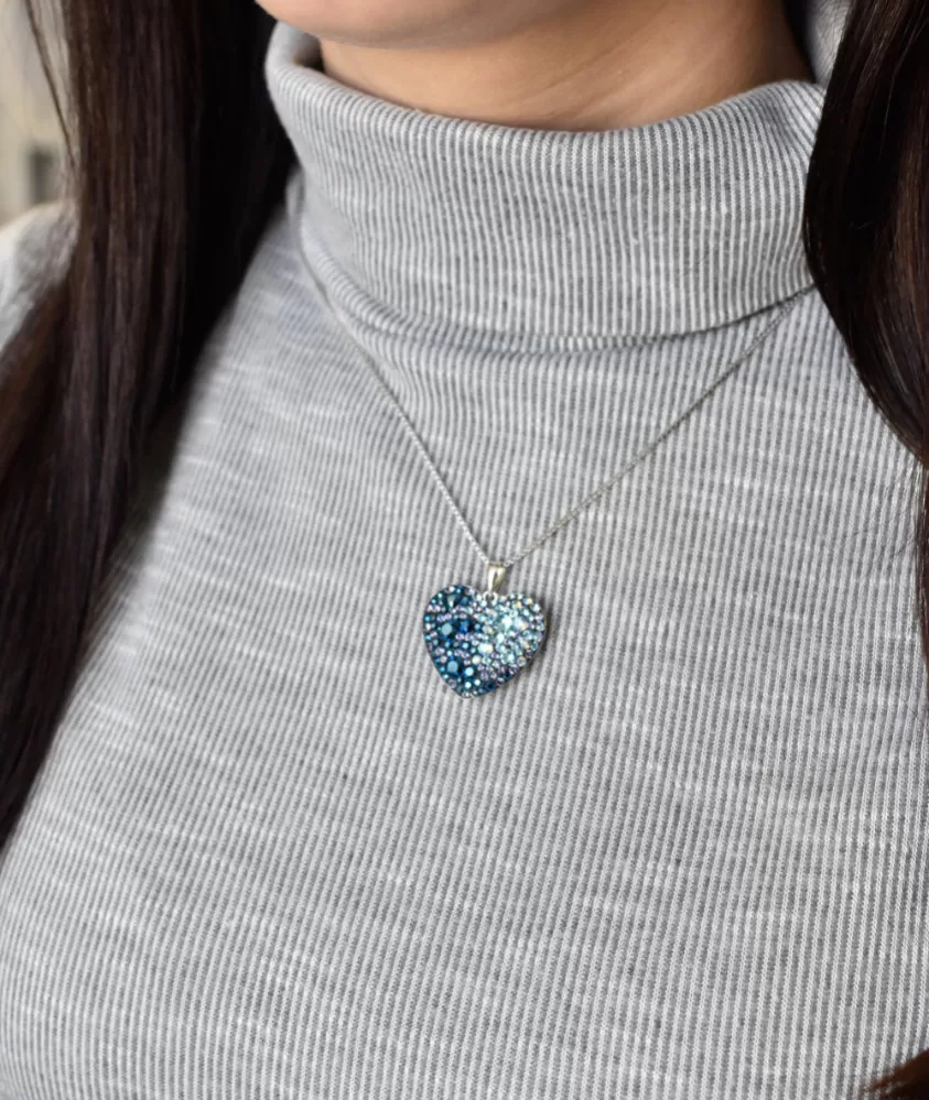 Srdiečko je vysadené Swarovski kryštálmi v modrej farbe.