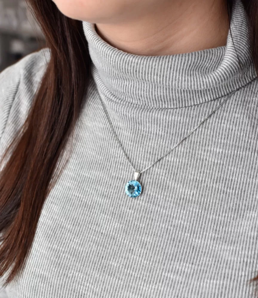 Modrý Swarovski kryštál má priemer 12 mm. Na prívesok bolo použité striebro rýdzosti 925/1000, ktorého povrch prešiel úpravou ródiom. Ródium šperk ochráni proti sčerneniu, zožltnutiu alebo poškriabaniu.