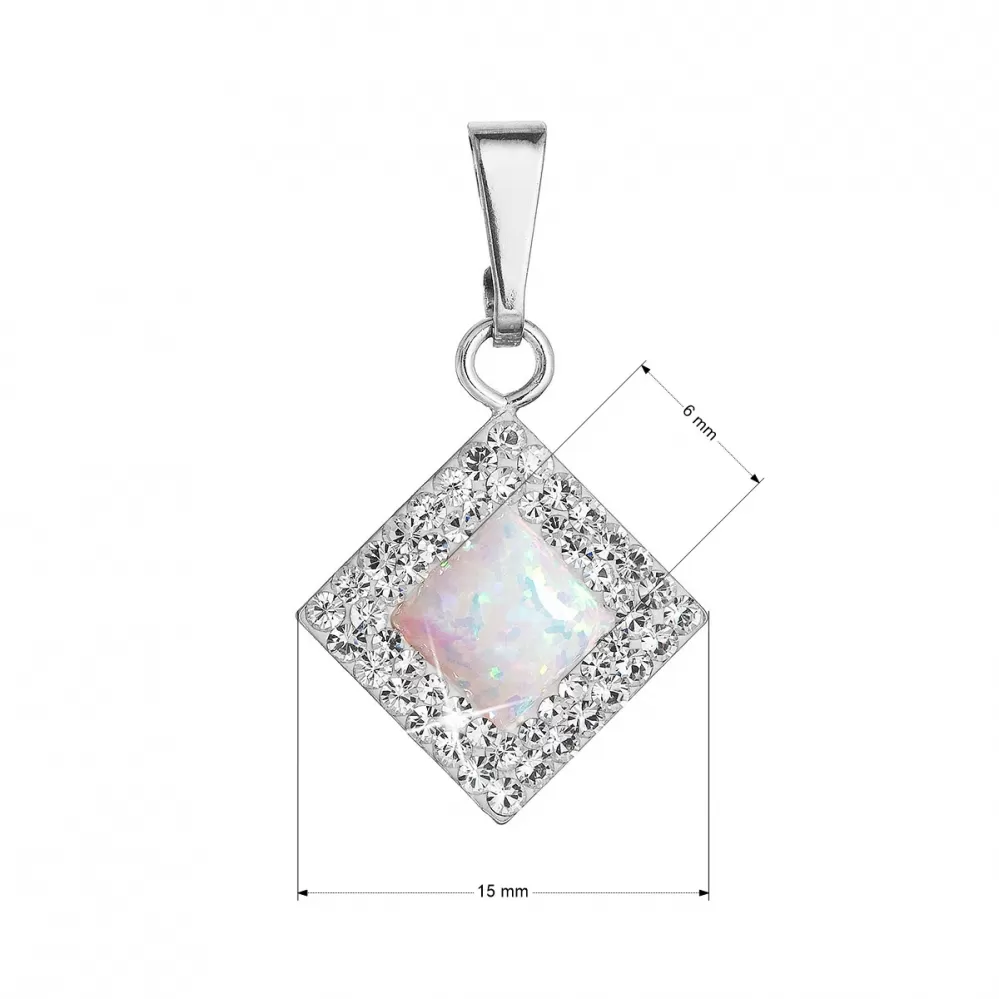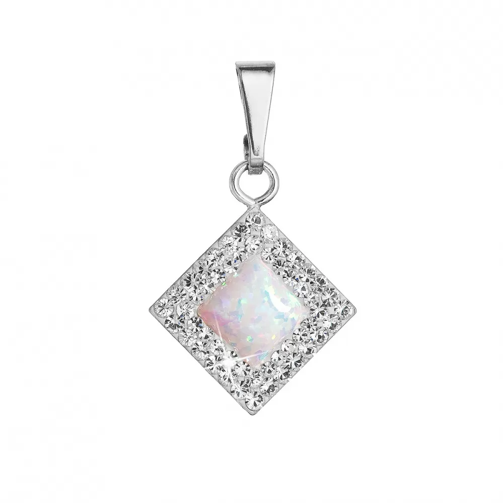 Strieborný prívesok so syntetickým opálom a kryštálmi Preciosa biely kosoštvorec 34260.1 white