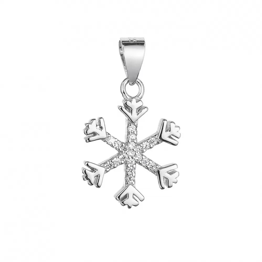Strieborný prívesok 14005.1 v tvare vločky so zirkónmi je vyrobený zo striebra o rýdzosti 925/1000 vrátane povrchovej úpravy ródiom. Ródium ochráni šperk proti nechcenému sčernaniu, zožltnutiu i poškriabaniu.