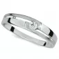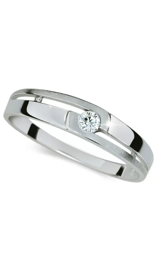 Dámsky prsteň s jedným bielym zirkónom je vyrobený z bieleho štrnástich karátového zlata 585/1000.  Prsteň je vyrobený v kombinácii lesklej a matnej povrchovej úprave.